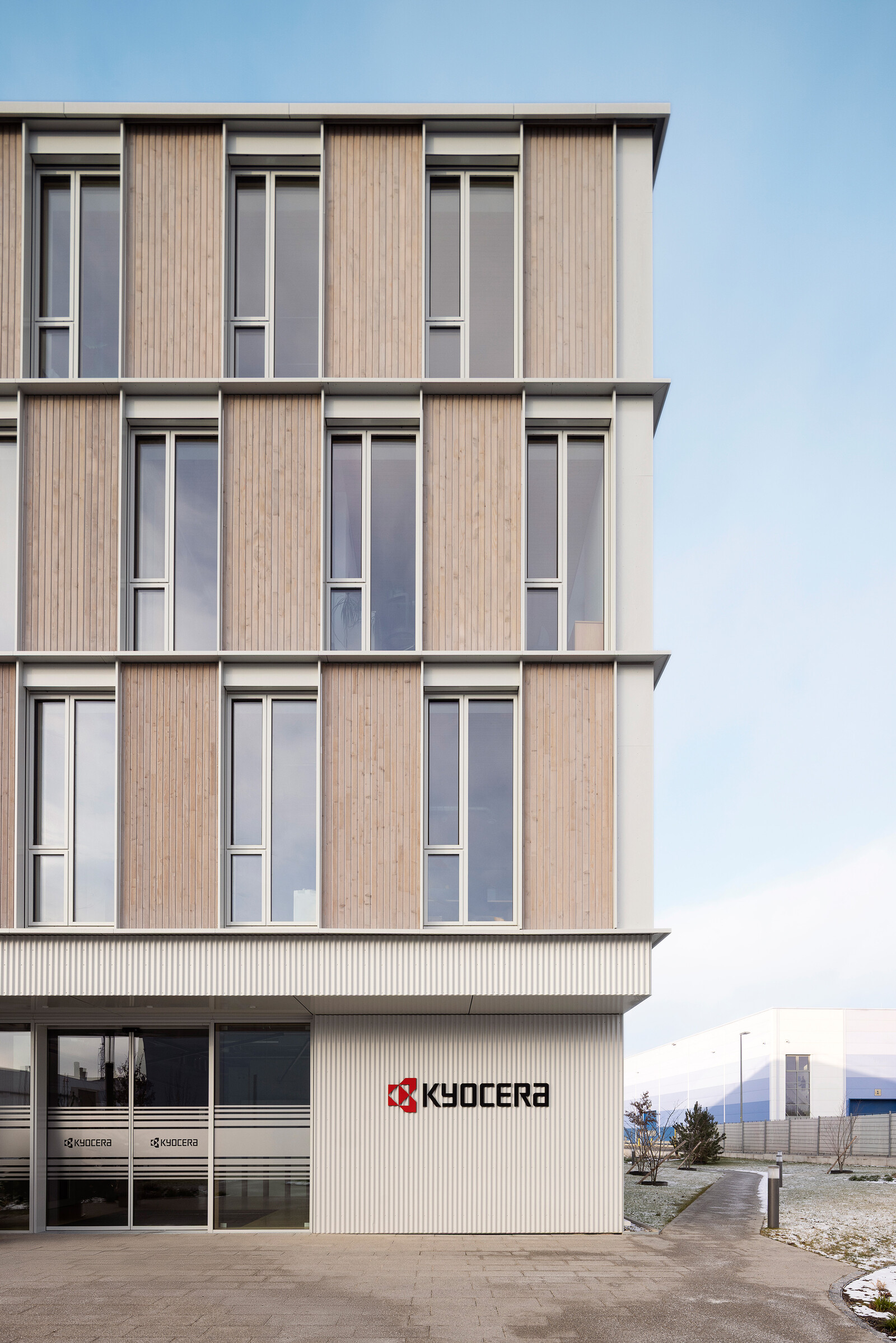 »KYOCERA Fineceramics Europe GmbH hat für ihre neue Verwaltungszentrale mit Logistik- und Produktionshalle in Mannheim-Friedrichsfeld von Konzeption bis Ausführung auf STUDIO SF vertraut. Von Anfang an stand im Fokus, das Bauprojekt nicht nur funktional und gestalterisch ansprechend zu gestalten, sondern auch die CO₂-Emissionen durch Bau und Betrieb zu minimieren. Hierzu konnte durch die innovative Gestaltung und Ausführung in Holzbautechniken ein wesentlicher Beitrag geleistet werden.