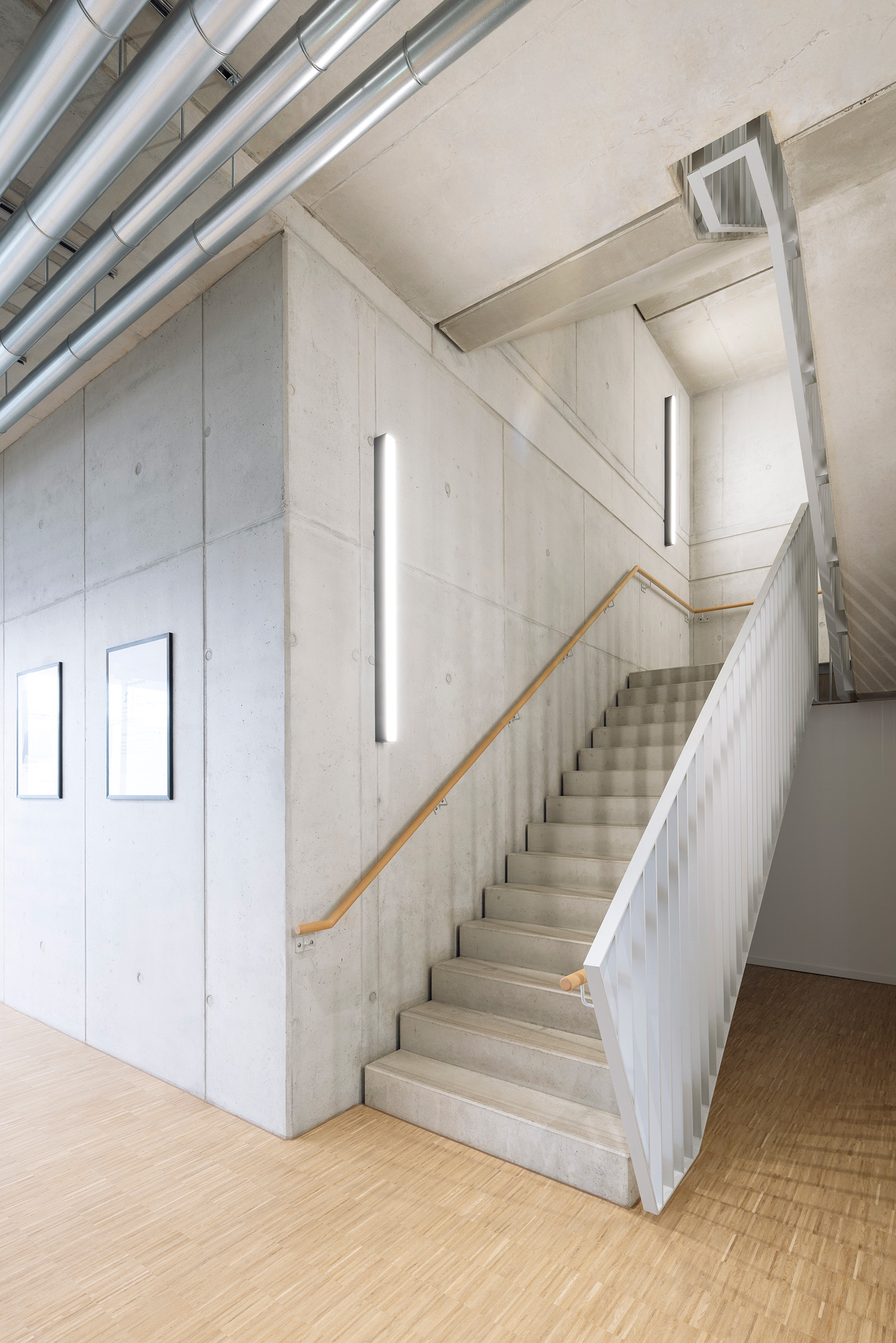 • Kompromisslos spürbare Architektur, Sichtholzflächen, Sichtbeton und sichtbare Technikleitungen.