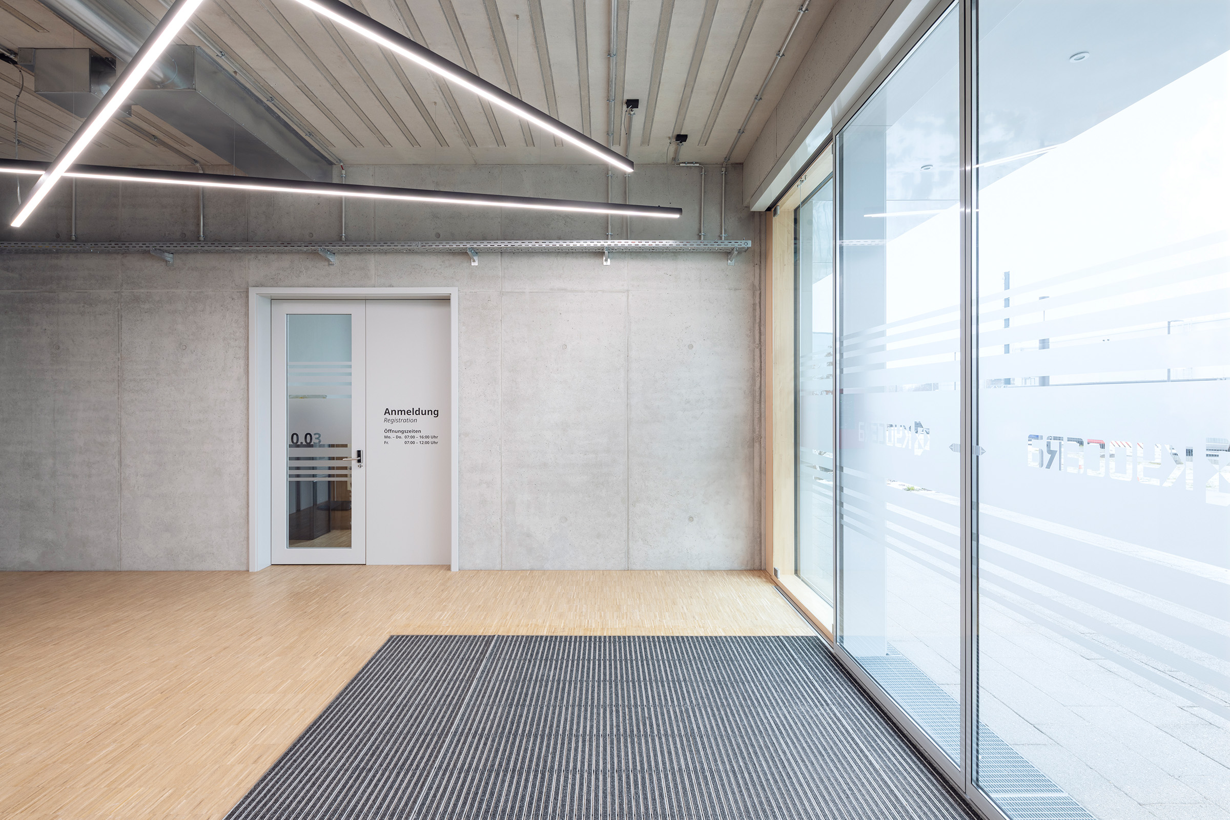 Ein durchgängiges, wirtschaftlich optimiertes Ausbauraster prägt sowohl die innere Struktur als auch die Fassadengliederung und verleiht dem Gebäude eine ruhige, präzise Erscheinung. Ergänzt wird der Neubau durch neu gestaltete Außenanlagen, die versiegelte Flächen reduzieren, Retentionsbereiche integrieren und qualitätsvolle Aufenthaltsräume für Mitarbeitende schaffen. Auf diese Weise entsteht ein klar strukturiertes Ensemble, das dem Standort eine identitätsstiftende architektonische Ordnung verleiht.